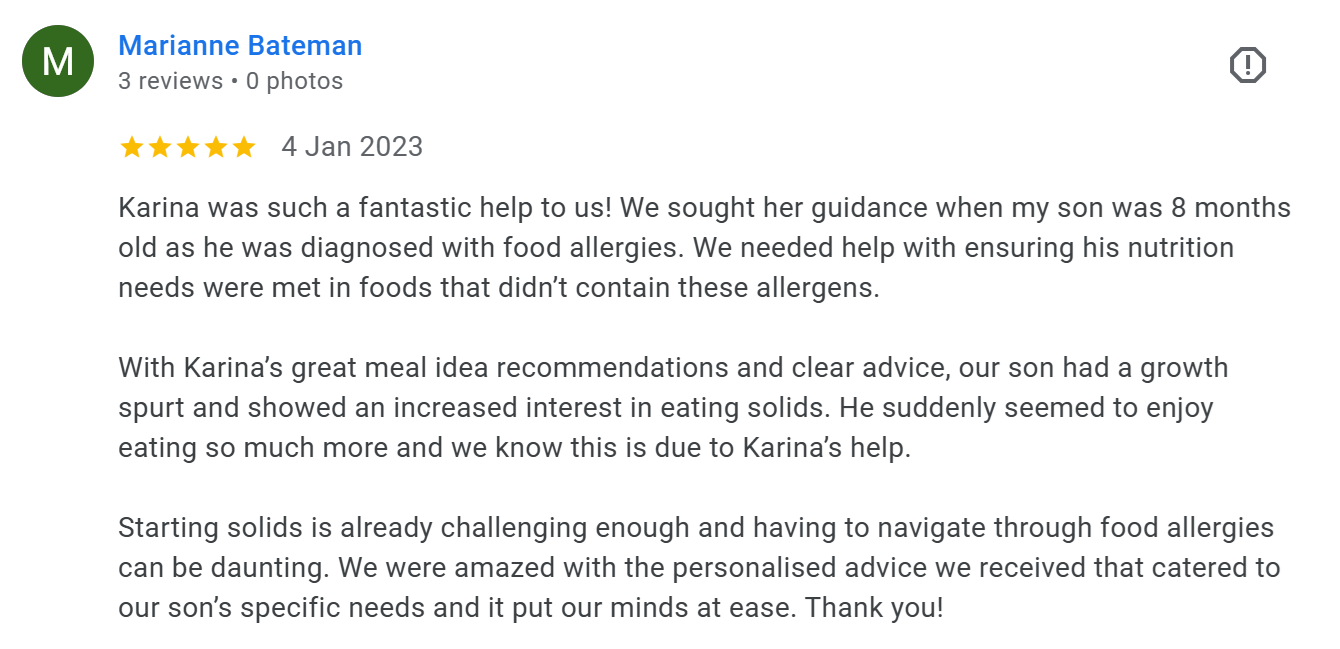This Exclusive one-on-one package is designed for parents who want the highest level of personalised support, expert guidance and direct access to Karina as their child’s Expert Paediatric Dietitian.
