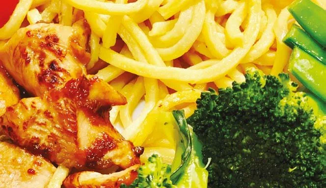 Honey soy chicken with hokkien noodles and veg